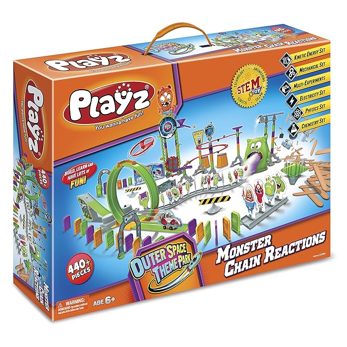 Buy Playz Skylab Adventure Monster Chain Reactions Marble Run Science Kit Stem Toy With Race Tracks For Boys Girls Kids Roller Coaster Toy Experiments Outer Space Theme Park Educational Gift Online